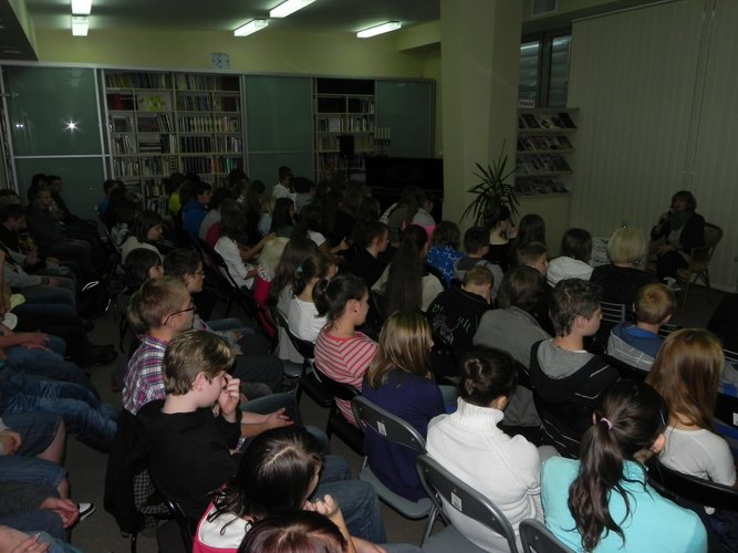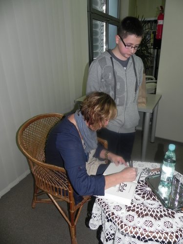 20 września Miejska i Gminna Biblioteka Publiczna im. Leona Kruczkowskiego w Wieluniu gościła Barbarę Kosmowską – wspaniałą autorkę piszącą ciekawe książki dla dorosłych i młodszych czytelników. Nic więc dziwnego, że w spotkaniu wzięło udział liczne grono młodzieży z wieluńskich szkół gimnazjalnych (ponad 100 osób).