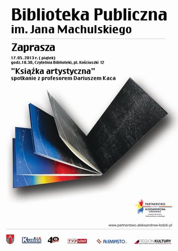 17.05.2013 (piątek) godz.18.30; Czytelnia Biblioteki Publicznej im. Jana Machulskiego w Aleksandrowie Łódzkim (pl. Kościuszki 12); "Książka artystyczna" spotkanie z profesorem Dariuszem Kacą.