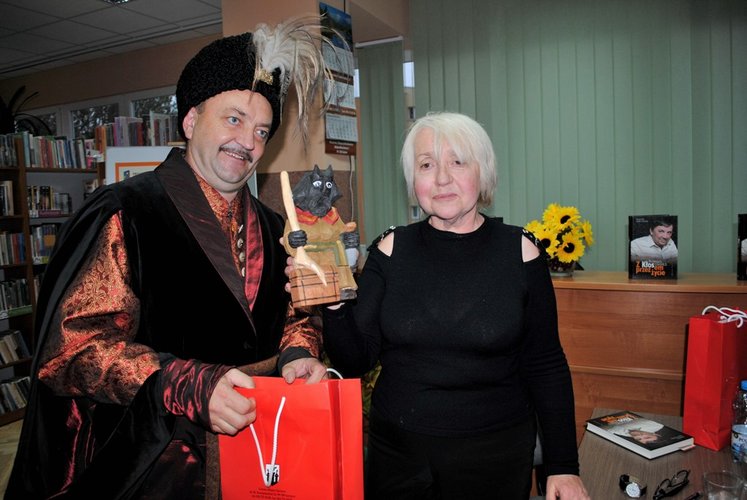 Spotkanie przybrało formę rozmowy, którą z panem Romanem prowadziła Jagoda Opalińska, wieloletnia przyjaciółka państwa Kłosowskich. Usłyszeliśmy kilka zabawnych anegdot z życia artysty. Rozmowa była też przeplatana fragmentami książki. W trakcie spotkania Pan Roman dał również próbkę swego talentu, recytując kilka ulubionych wierszy Tuwima i Broniewskiego. Drobne upominki wręczył gościom imć Szlachcic Boruta we własnej osobie.
