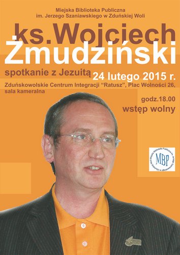 Miejska Biblioteka Publiczna im. Jerzego Szaniawskiego w Zduńskiej Woli zaprasza na spotkanie z jezuitą, ks. Wojciechem Żmudzińskim. Spotkanie odbędzie się 24 lutego o godz. 18.00 w sali kameralnej w Zduńskowolskim Centrum Integracji "Ratusz". Wstęp wolny!