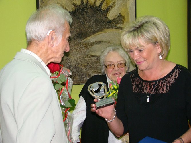 Kilkaset złotych z emerytury wydawane na lekarstwa, brak siły na codzienne czynności – tak wygląda życie większości 70 i 80-latków w Polsce. Jan Morawiec udowadnia, że jesień życia może przebiegać zupełnie inaczej. Pan Jan jest mężem, ojcem, dziadkiem, pradziadkiem i… czynnym maratończykiem, a właściwie multimaratończykiem. Ma 82 lata. W czasach PRL był reprezentantem Polski w lekkoatletyce. Trenował w jednej kadrze ze Zdzisławem Krzyszkowiakiem i Jerzym Chromikiem. Oni odeszli już z tego świata, a on… nadal biega maratony. W niedzielę, 13 kwietnia, ukończył kolejny. Tym razem w Łodzi. W roku ubiegłym z wynikiem 4:04.37 sięgnął po mistrzostwo świata w brazylijskim Porto Alegre. Tu warto dodać, że najlepszy zawodnik z młodszej kategorii 75 lat przybiegł półtorej godziny za panem Janem. Podobno sekret Pana Jana kryje się w profesjonalnym treningu, za który odpowiada trener Ryszard Goszczyński, a także w dyscyplinie. Sprawność ciała i bystrość umysłu to nagroda za wysiłek i dyscyplinę. Jan Morawiec nie patrzy jednak na bieganie w tych kategoriach. Dla niego to przede wszystkim pasja i sens życia. Chłopak z Bałut, maratończyk z ul. Maratońskiej w Łodzi, we wtorek 15 kwietnia spotykał się z mieszkańcami Zgierza i opowiedział nie tylko o bieganiu. Mistrzowi towarzyszyła żona – Jadwiga Morawiec. Miłym akcentem spotkania był mini-koncert ulubionych utworów Gościa, w wykonaniu Wioletty Cywińskiej, której w jednej z piosenek towarzyszyła Aneta Jóźwiak. Przybyli na spotkanie mogli także podziwiać niewielki „wycinek” trofeów Legendy Polskiego Maratonu. Prezes Stowarzyszenia Byłych Działaczy, Zawodników i Sympatyków KS Boruta Zgierz, Piotr Patora, uhonorował podczas spotkania trzech zgierskich sportowców – Jarosława Cylke, Jerzego Frątczaka i Józefa Stefaniaka.