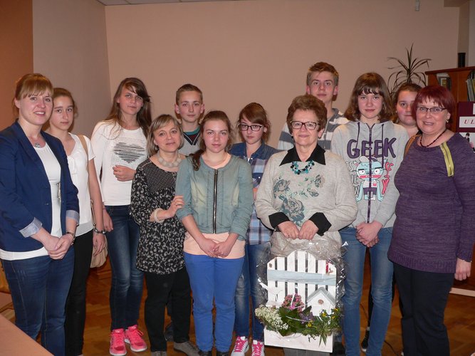Maria Ulatowska jako mała dziewczynka chciała być dorożkarzem, później strażakiem, a jeszcze później dziennikarką. Ukończyła prawo na Uniwersytecie Warszawskim, potem jeszcze bankowość na SGH. Pracowała w kilku miejscach. Przez 15 lat przed emeryturą zajmowała się prawem dewizowym w NBP. Zaczęła pisać już na emeryturze w 2011 r. Jak sama mówi: „po przejściu na emeryturę klawiatura mojego komputera kazała mi pisać książki, co zresztą prawie robi za mnie”. Będąc optymistką chciała trochę nadziei przekazać innym. Stąd jej książki są takie ciepłe. Najnowsza książka pani Marii, napisana z kolegą, będzie kryminałem. Przeczytamy ją już jesienią. Prawdopodobnie wiosną przyszłego roku będziemy śledzić dalsze wydarzenia w Sosnówce. Od dziecka czytała dużo. Nie lubi pytań o ulubionego pisarza. Gdy podoba się jej jakaś powieść, poznaje inne utwory tego autora. W tym momencie on jest ulubionym pisarzem, ale niedługo poznaje nowego i sytuacja się powtarza. Na bezludną wyspę zabrałaby „Ziele na kraterze” Wańkowicza. Podczas spotkania znalazł się także czas na pytania czytelniczek oraz składanie autografów. Cieszymy się, że pisarka, mimo innych zobowiązań, przyjęła nasze zaproszenie.
