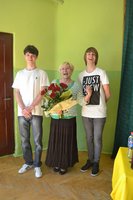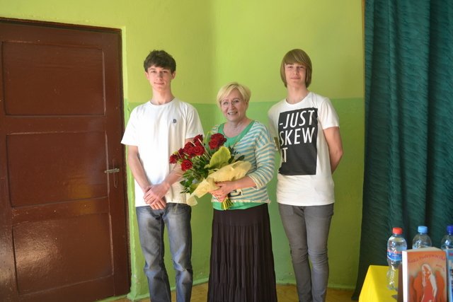 Na zakończenie spotkania, pisarka otrzymała piękny bukiet z czerwonych róż z rąk Pani dyrektor GBP w Rząśni - Joanny Konieczko oraz malusieńki bukiecik z misternie zrobionych bibułowych kwiatuszków od klubowiczów DKK w Stróży.