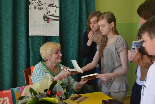 Spotkanie trwało ponad godzinę. Po serii pytań o książki pani Marty, jej bohaterów, upodobania czytelnicze czy życie prywatne, ustawiła się długa kolejka po autografy i do pamiątkowych zdjęć, na co chętnie zgodziła się nasza pisarka. Miłym zaskoczeniem dla Pani Marty była prośba chłopców o indywidualne zdjęcie, która została oczywiście spełniona.