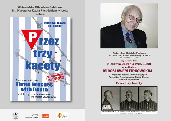 W środę 9 kwietnia o godz. 13.00 w sali konferencyjnej Wojewódzkiej Biblioteki Publicznej w Łodzi (ul. Gdańska 100/102) odbędzie się spotkanie z Mirosławem Firkowskim – więźniem trzech obozów: Auschwitz, Neuengamme, Bergen-Belsen, autorem książki Przez Trzy kacety, która jest zapisem ciężkich przeżyć wojennych. Spotkanie połączone będzie z projekcją filmu „Dzień, jak co dzień”, przygotowanego wspólnie z Towarzystwem Opieki nad Oświęcimiem dla uczczenia 62 rocznicy wyzwolenia obozu.