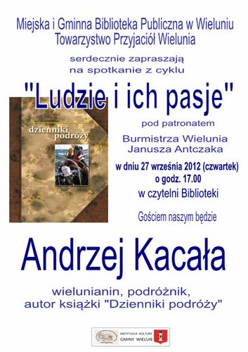 Miejska i Gminna Biblioteka Publiczna im. Leona Kruczkowskiego w Wieluniu zaprasza 27 września o 17 na spotkanie autorskie z Andrzejem Kacałą. Bohater spotkania jest wielunianinem, podróżnikiem, żeglarzem, miłośnikiem astronomii i science-fiction.