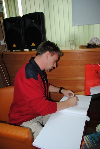 Nasz gość jest człowiekiem bardzo aktywnym. Jest autorem cyklu powieści sensacyjno-przygodowych dla młodzieży, dziennikarzem, reportażystą, organizatorem wypraw i szkół przetrwania. Prowadził harcerski obóz specjalny. Uczestnicząc w szkoleniach organizowanych przez oddziały antyterrorystyczne, przeszedł szkolenia survivalu, walki wręcz, psychologii sytuacji krytycznych. Ukończył studia politologiczne ze specjalizacją dziennikarską. Publikował w czasopismach polskich i niemieckich. Pracował w studiu radiowym Egida, dla telewizji Katowice przygotowywał programy dla dzieci i młodzieży. Jest członkiem Dolnośląskiego Oddziału Związku Literatów Polskich. Jest współorganizatorem Międzynarodowego Festiwalu Poezji POECI BEZ GRANIC. Wciąż pisze kolejne książki. Uczestniczy w akcji "Cała Polska czyta dzieciom". Prowadzi międzynarodowe szkolenia literackie i warsztaty dziennikarskie. Na spotkaniu w barwny i humorystyczny sposób opowiedział o swej wyprawie do Peru. Zaopatrzony był nie tylko w książki ale również akcesoria survivalowe pamiątki z wyprawy oraz prezentację fotografii z wypraw. Szczególne zainteresowanie zebranej młodzieży budziły maczeta oraz indiańska dmuchawka na strzałki. Zachęcał by spędzać życie aktywnie i ciekawie Entuzjastyczne reakcje młodzieży wskazują, że udało mu się ją zainteresować swoją charyzmą i osobowością. Na koniec dał praktyczny pokaz sztuk samoobrony. Spotkanie odbyło się w ramach projektu „Łęczycka kraina w słowie, legendzie i obiektywie”. Zadanie zrealizowaoe wspólnie z PTTK „Ziemi Łęczyckiej” oraz Łódzkim Domem Kultury, który jest jednocześnie współorganizatorem przedsięwzięcia. Marek Kamiński mkkaminski@wp.pl
