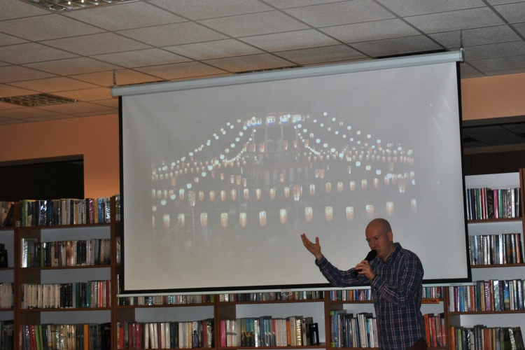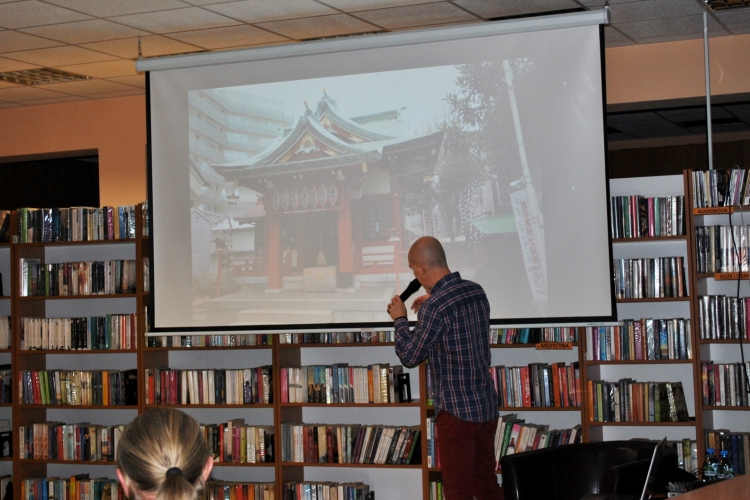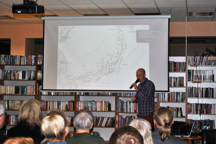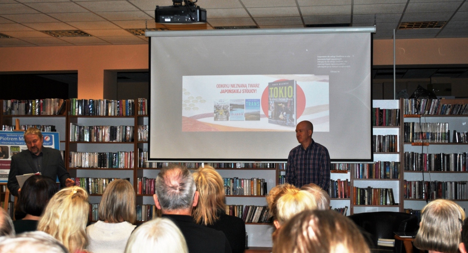 Na spotkaniu opowiadał o części Tokio zwanej Shitamachi, czyli Dolne Miasto, w którym mieszkał i z którym się zżył. To miejsce poprzecinane wąskimi alejkami, z ludźmi którzy się wzajemnie znają, nie są anonimowi, miejsce pełne małych warsztatów rzemieślniczych, niewielkich sklepików, kiosków, herbaciarni oraz targów. Także miejsce pełne parków, świątyń i chramów, w którym odprawia się uroczystości religijne i różne rytuały, urządza festiwale, gdzie można nieco odetchnąć i oddać się zadumie. Opowieść dopełniona była pokazem niesamowitych fotografii. Pan Piotr odpowiedział też na wiele pytań dotyczących Japonii, doświadczeń związanych z mieszkaniem tam i podróżowaniem po tym kraju. Osoby zainteresowane tematem mogły też nabyć najnowszą książkę naszego gościa: „Tokio. Opowieści z Dolnego Miasta”, w której opisuje tą mniej znaną twarz japońskiej stolicy.Spotkanie z Piotrem Milewskim zostało zorganizowane w ramach Dyskusyjnego Klubu Książki działającego przy łęczyckiej bibliotece.