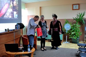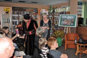 Podzielił się z nami wspomnieniami z przeszło miesięcznego pobytu w Ameryce Południowej. Stefan Czerniecki przeniósł nas do dalekiej i egzotycznej Wenezueli, w jej najbardziej dzikie i niedostępne rejony, gdzie do niedawna władze nie wpuszczały żadnych zagranicznych podróżników ani turystów. Jego ciekawe i niezwykle humorystyczne opowiadanie dotyczyło głównie kontaktów z indiańskimi przewodnikami i dziećmi. Spotkanie tych dwu kultur i obyczajów stwarzało wiele komicznych sytuacji. Podróżnik zaprezentował też tak wiele fotografii tych dziewiczych terenów, że poczuliśmy niemal jakbyśmy widzieli te miejsca własnymi oczami. Po spotkaniu można było nabyć książki jego autorstwa Dalej od Buenos, Cisza i rzecz jasna otrzymać dedykację. Drobny upominek wręczył gościowi imć Szlachcic Boruta we własnej osobie. On też częstował zebranych yerba mate. Spotkanie realizowane zostało w ramach cyklu Łęczyckie Biesiady Literackie w ramach projektu „Szlachcic Boruta marką Łęczycy i Województwa Łódzkiego – etap II współfinansowanego przez UE z Europejskiego Funduszu Rozwoju Regionalnego.