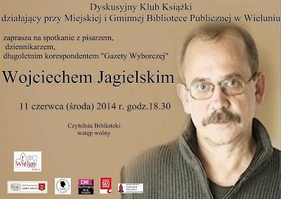 Dyskusyjny Klub Książki działający przy Miejskiej i Gminnej Bibliotece Publicznej im. Leona Kruczkowskiego w Wieluniu zaprasza w dniu 11 czerwca (środa) 2014 r. o godz. 18.30 na spotkanie autorskie. Gościem spotkania będzie Wojciech Jagielski - pisarz, dziennikarz, długoletni korespondent "Gazety Wyborczej". Wstęp na spotkanie jest bezpłatny.