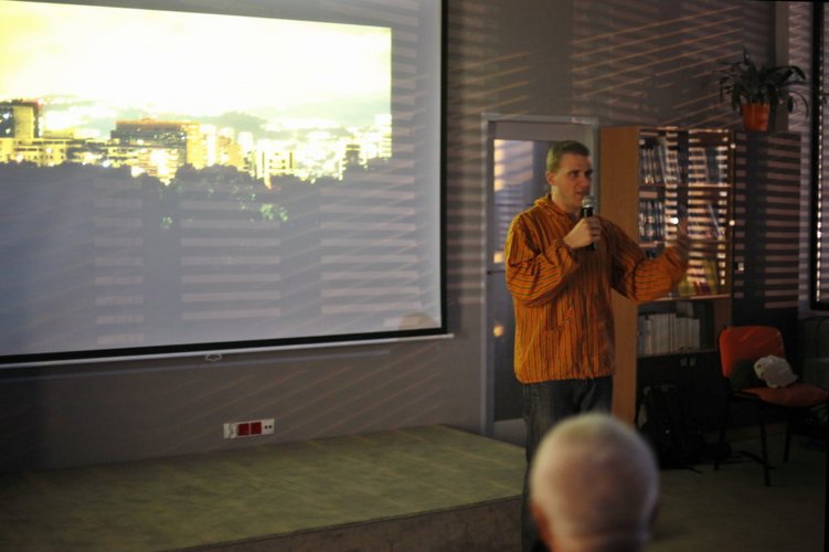 Sieradzanom podróżnik opowiedział o wyprawie do stanu Amazonas w południowej części Wenezueli. Ten rejon nie jest przeznaczony dla turystów. Przejście dżungli możliwe jest tylko dzięki pomocy lokalnych przewodników indiańskich. Stefanowi Czernieckiemu udało się dotrzeć do skalnego tepui Cerro Duida. Dla globtrotera interesujące było także poznawanie mentalności i zwyczajów Indian. Chyba należy się zgodzić z poglądem Indianina, że góra najładniej wygląda, gdy patrzy się na nią z dołu - po co więc się męczyć wielogodzinną wspinaczką na szczyt? W Wenezueli można natknąć się na anakondę, małpę i tarantulę. Indianie najbardziej boją się jednak spotkanie z jaguarem. Uczestnicy spotkania pytali gościa m. in. o to, co jadł w dżungli.