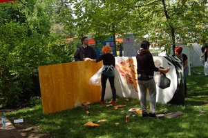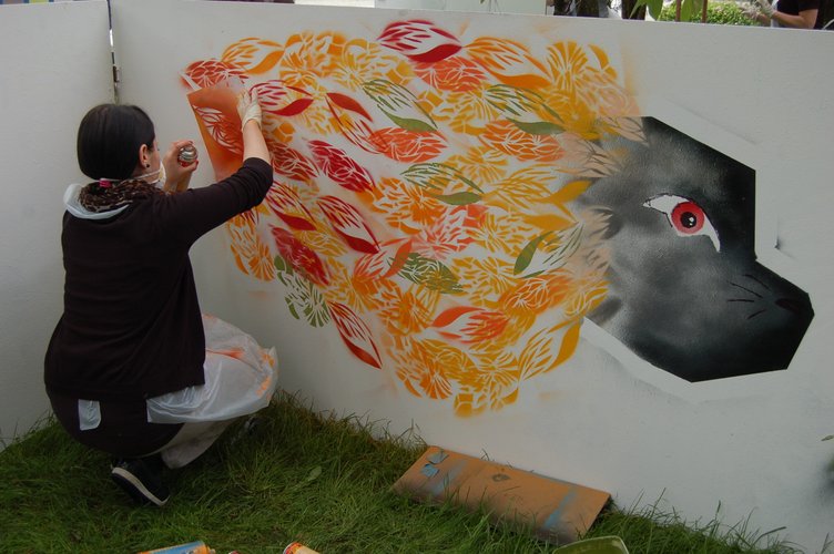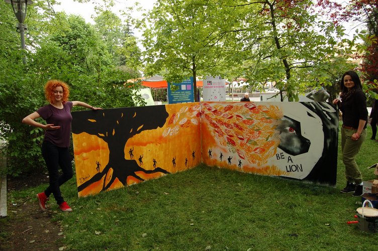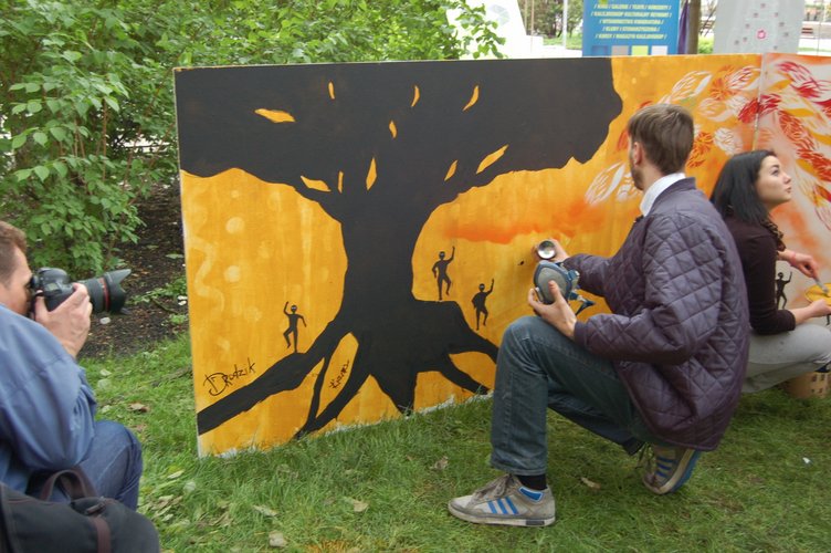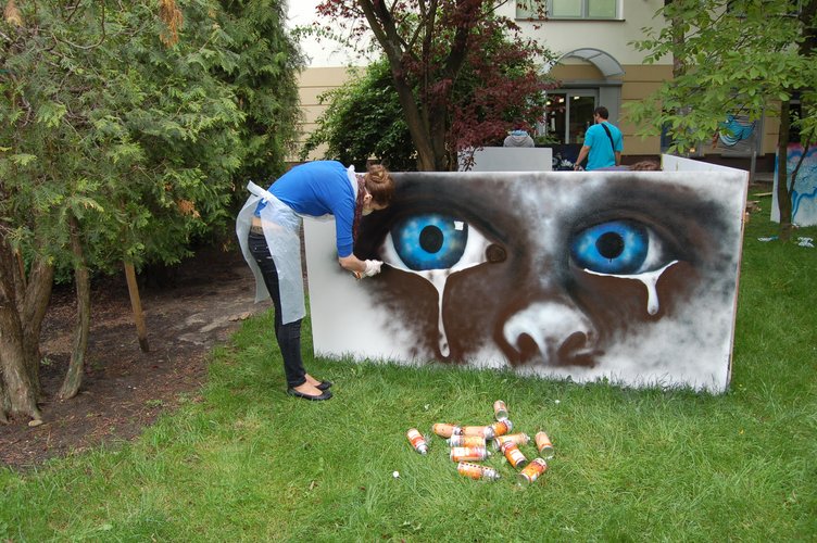 W sobotę uczestnicy projektu zostali wprowadzeni w teoretyczne zagadnienia związane z historią street artu. Podczas spotkania omówiono dobre praktyki, które dzięki czterem edycjom projektu „Graffiti – sztuka miasta” są od lat stosowane w województwie łódzkim oraz przedstawiono przykłady rozwiązań praktycznych problemów, na które można napotkać podczas realizacji wydarzeń kulturalnych w miejskiej przestrzeni publicznej. W niedzielę 10 animatorów kultury chwyciło farby i szablony, by pod czujnym okiem prowadzącego zmierzyć się z techniką graffiti. Ich zaangażowanie przerosło oczekiwania, a efektem były brawurowo wykonane prace, w których widać kreatywność, jaką rozbudziła poznawana technika.