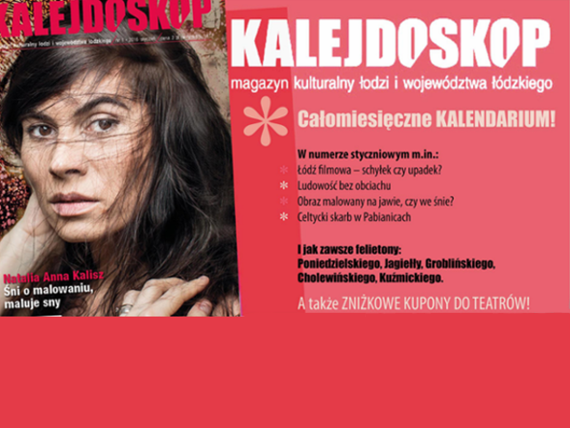 Styczniowy Kalejdoskop już w sprzedaży! W najnowszym numerze znajdziecie m.in. rozmowę z Natalią Anną Kalisz – jedną z najciekawszych absolwentek łódzkiej ASP ostatnich lat. Przeczytacie też o schyłku, ale nie upadku Łodzi filmowej. Dowiecie się, jak folkowe melodie zadomawiają się w mieście za sprawą muzyków zespołu Odpoczno, a tomaszowski teatr Trzcina magnetyzuje widza bez użycia słów...