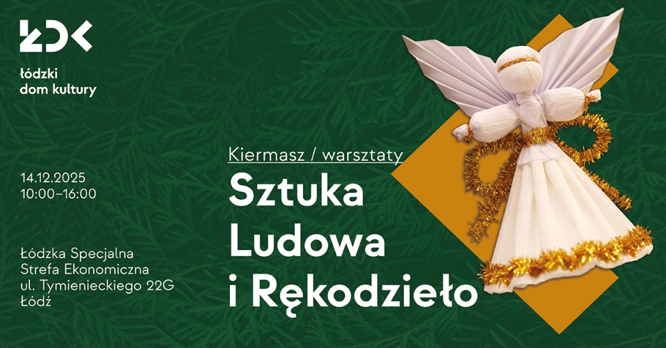 14 grudnia o godzinie 10 zapraszamy na Świąteczny Kiermasz Sztuki Ludowej i Rękodzieła. Odbędzie się on w nowej lokalizacji w Łódzkiej Specjalnej Strefie Ekonomicznej na ul. Tymienieckiego 22G.