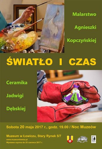 Muzeum w Łowiczu zaprasza na wystawę Agnieszki Kopczyńskiej i Jadwigi Dębskiej „Światło i czas”. Obie artystki są rodowitymi Łowiczankami. Tematem przewodnim wystawy jest światło i czas, jednak nie pokazane wprost, w dosłownym znaczeniu, lecz jako element składowy wszystkich naszych prac oraz każdej z osobna. Bez światła nie ma cienia, nie ma też koloru. Nie ma zatem ani obrazu ani formy przestrzennej, jaką jest ceramika.