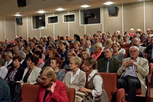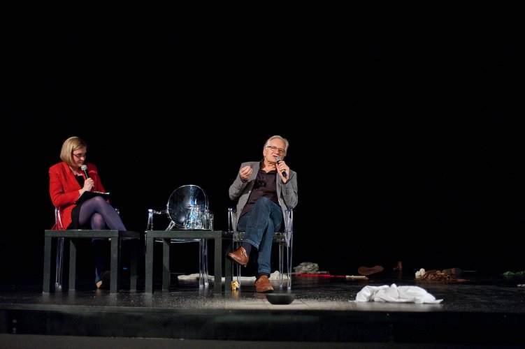 Kilka chwil później rozpoczęło się spotkanie z aktorem, które prowadziła redaktor "Gazety Radomszczańskiej" Jolanta Dąbrowska. Podczas rozmowy Andrzej Seweryn opowiedział o zawodzie aktora, inspiracji Szekspirem, pracy w teatrze, o fenomenie kina i marginalizacji teatru.