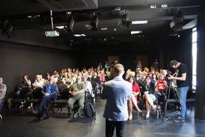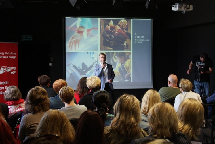 Program spotkania, w którym udział wzięło ponad 50 przedstawicieli szkół, instytucji i placówek kulturalnych obejmował: "Od uczenia publiczności do współdziałania z partnerami. Wykład performatywny dr Leszka Karczewskiego", "Moja historia a biografia Starego Poety", "Warsztaty wobec poezji Tadeusza Różewicza realizowane przez Barbarę Kaczorowską i Katarzynę Mądrzycką - Adamczyk", "Jak zbudować scenariusz działania edukacji kulturowej? Burza mózgów - sesja pytań i odpowiedzi".