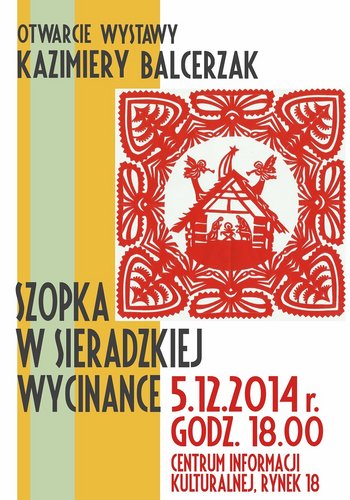 Jest to już druga wystawa Kazimiery Balcerzak w Centrum Informacji Kulturalnej w Sieradzu. Tym razem głównym motywem, pojawiającym się na wycinankach, będzie bożonarodzeniowa szopka w rożnych odsłonach. Każda praca jest niepowtarzalna, wycinanki różnią się wielkością i kolorami, są bardzo misternie wykonane. Na wernisażu będzie również możliwość zakupu kartek świątecznych z motywem świątecznej wycinanki.