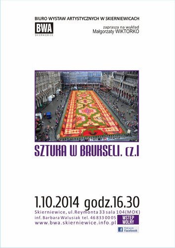 Biuro Wystaw Artystycznych w Skierniewicach zaprasza na wykłady z historii sztuki. W tym tygodniu, w środę, 1 października o godz. 16.30 w sali 104 MOK w Skierniewicach odbędzie się wykład "SZTUKA W BRUKSELI cz.I". Wstęp bezpłatny!