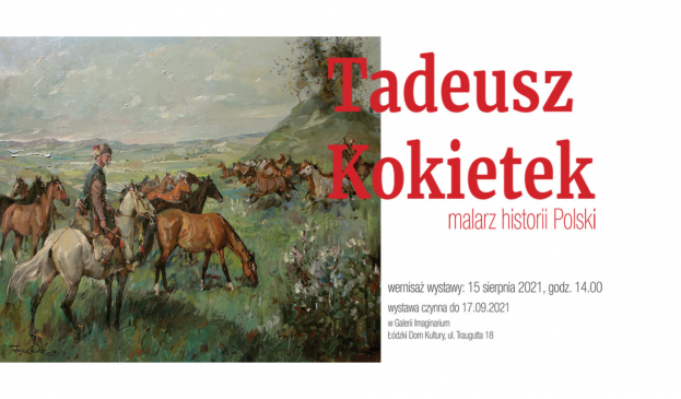 101. rocznica urodzin Tadeusza Kokietka to równie dobra okazja, aby przypomnieć łódzkiej publiczności tę nietuzinkową i barwną postać, ważną nie tylko lokalnie, ale – jak się okazuje z perspektywy prawie czterech dekad, jakie niebawem miną od jego śmierci – także w kontekście rozwoju polskiej sztuki. Sztuki u swego zarania romantyczno-realistycznej, pokazującej naszą historię i jej bohaterów, barwną rodzajowość wsi oraz urodę rodzimego krajobrazu – od której zaczęło się samodzielne polskie malarstwo. Obrazy u Tadeusza Kokietka już przed wojną zamawiali łódzcy fabrykanci, Geyerowie i Grohmanowie, prezydent Aleksy Rżewski – były to głównie portrety – zaś po 1945 roku bogaci kolekcjonerzy oraz urzędy. Jednym z bardziej prestiżowych oficjalnych zamówień był wielkoformatowy tryptyk olejny: Jeńcy, Hubal i Zasadzka z lat 70. XX wieku.Tadeusz Kokietek (ur. 06.04.1920 w Łodzi, zm. tamże 09.06.1982) – malarz, rysownik i ilustrator związany z Łodzią; samouk, kontynuator tradycji europejskiego realizmu, wzbogaconego doświadczeniami kolorystycznymi i wielką dbałością o detal. Pierwsze sukcesy artystyczne odnosił w okresie międzywojennym – za obraz „Bitwa pod Machnówką”, prezentowany w Narodowej Galerii Sztuki Zachęta w 1938 roku, dostał nagrodę Ministerstwa Wyznań i Oświecenia Publicznego. Już przed wojną utrzymywał się ze sztuki, malował portrety na prywatne zamówienia m.in. dla łódzkich fabrykantów. Inspiracji szukał w literaturze Henryka Sienkiewicza, Jana Chryzostoma Paska, Stefana Żeromskiego, Miguela Cervantesa oraz w polskiej historii, zwłaszcza XVII-XIX wieku. Malował historyzujące sceny rodzajowe, myśliwskie i batalistyczne, średniego i wielkiego formatu. Tworzył też kameralne autoportrety, portrety, pejzaże miejskie i wiejskie, martwe natury - w technice olejnej, akwarelowej, tuszem. Zajmował się ilustracją książkową np. „Olbrachtowi rycerze”, współpracował z łódzkim dziennikiem „Express Ilustrowany”, gdzie ilustrował cykle popularno-przygodowe np. Jeździec bez głowy. Od 1950 roku był członkiem Okręgu Łódzkiego Związku Polskich Artystów Plastyków, gdzie pełnił funkcję sekretarza zarządu, współpracował z salonami DESA w Warszawie i Łodzi.