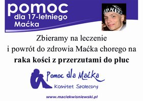 Grupa Teatralna PKP, działająca przy I LO w Bełchatowie chce pomóc choremu na raka kości Maćkowi Wiśniewskiemu tak, jak potrafi najlepiej. 27 października, młodzi aktorzy po raz kolejny zaprezentują spektakl „Tango” na sali teatralno – widowiskowej MCK PGE Giganty Mocy w Bełchatowie. Jako, że inicjatywa ma charakter charytatywny, cały dochód ze sprzedaży biletów na spektakle zostanie przeznaczony na rzecz chorego Maćka.