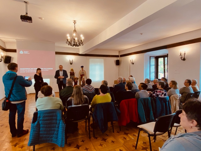 Tym razem twórczynie i twórcy ludowi, reprezentujący różnorodne dziedziny twórczości, spotkali się w siedzibie Muzeum Regionalnego w Opocznie, przy udziale Zastępcy Burmistrza Opoczna Tomasza Łuczkowskiego, Gminy Opoczno, Dyrektora Miejskiego Domu Kultury w Opocznie Zdzisława Miękusa oraz Andrzeja Białkowskiego i Eweliny Kurkowskiej z Łódzkiego Domu Kultury.Agata Mucha, Koordynator ds. Niematerialnego Dziedzictwa Kulturowego Narodowy Instytutu Dziedzictwa przedstawiła przykłady zjawisk kulturowych, wpisanych dotychczas na listę, wyjaśniła również procedury niezbędne do dokonania wpisu i wynikające z niego korzyści. Spotkanie miało formę konsultacji społecznych, w trakcie których dyskutowano m.in. o tym, jakie dziedziny twórczości powinny znaleźć się na liście, aby zwiększyć szansę na zachowanie ciągłości przekazu kultywowanych tradycji. Zgodnie podkreślano, że w regionie opoczyńskim wciąż żywy jest przekaz związany nie tylko z charakterystycznym rękodziełem (plastyka papierowa, obrzędowa), ale też muzyką, tańcem, gwarą czy zwyczajami. Podczas spotkania, w jednogłośnym głosowaniu, wybrano przedstawicielkę depozytariuszy, która reprezentować będzie środowisko twórców regionu opoczyńskiego, panią Zofię Pacan – zasłużoną twórczynię ludową, uhonorowaną m.in. Nagrodą im. Oskara Kolberga.