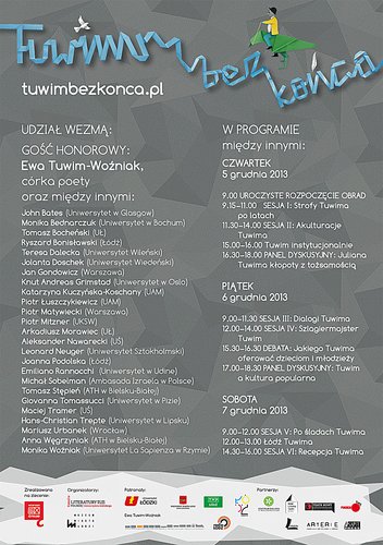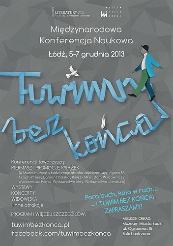 Katedra Literatury Polskiej XX i XXI wieku Uniwersytetu Łódzkiego oraz Muzeum Miasta Łodzi zapraszają na Międzynarodową Konferencję Naukową TUWIM BEZ KOŃCA, która odbędzie się 5-7 grudnia 2013 roku w Łodzi w Pałacu Poznańskich (ul. Ogrodowa 15, Sala Lustrzana).