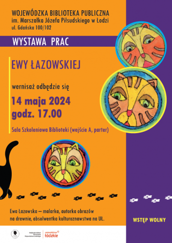 14 maja, godz. 17.00 – Wernisaż wystawy prac malarki Ewy Łazowskiej. Artystka maluje na drewnie dając mu drugie życie. Na obrazach przedstawionych podczas wystawy królować będą koty.
