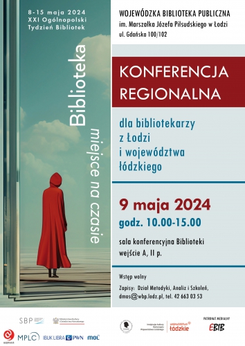 9 maja, godz. 10.00-15.00 – Konferencja regionalna dla bibliotekarzy z Łodzi i województwa łódzkiego. Podczas wydarzenia bibliotekarze podzielą się dobrymi praktykami z realizacji zadań we własnych Instytucjach. Będzie to doskonała okazja do promocji działań bibliotek z województwa łódzkiego. Patronat medialny nad wydarzeniem objął EBIB. Szczegółowy program dostępny jest pod linkiem: https://www.wbp.lodz.pl/aktualnoci/spotkania-sesje/3632-konferencja-regionalna-dla-bibliotekarzy.html
