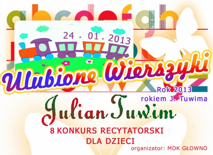 Osiem placówek przedszkolnych z terenu miasta i gminy Głowna weźmie udział w 8 Konkursie Recytatorskim dla dzieci "Ulubione Wierszyki", który odbędzie się 24 stycznia w Miejskim Ośrodku Kultury w Głownie. Tematyka wierszyków tegorocznego konkursu związana jest z ogłoszonym 2013 Rokiem Tuwima.