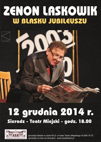 12 grudnia o godz. 18.00 w Sieradzkim Centrum Kultury w programie W blasku jubileuszu Zenon Laskowik zaprezentuje najlepsze skecze, scenki i piosenki z wybranych spektakli. Bilety w cenie 60 zł.