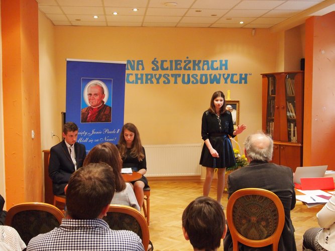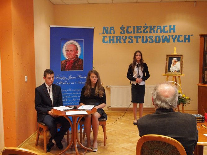 By oddać hołd Janowi Pawłowi II, z okazji kanonizacji, z inicjatywy nauczycieli Zespołu Szkół w Gałkowie Dużym w Miejskiej Bibliotece Publicznej w Koluszkach odbył się Powiatowy Konkurs Recytatorski “Na ścieżkach Chrystusowych…”. Wzięło w nim udział 23 gimnazjalistów.