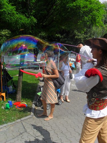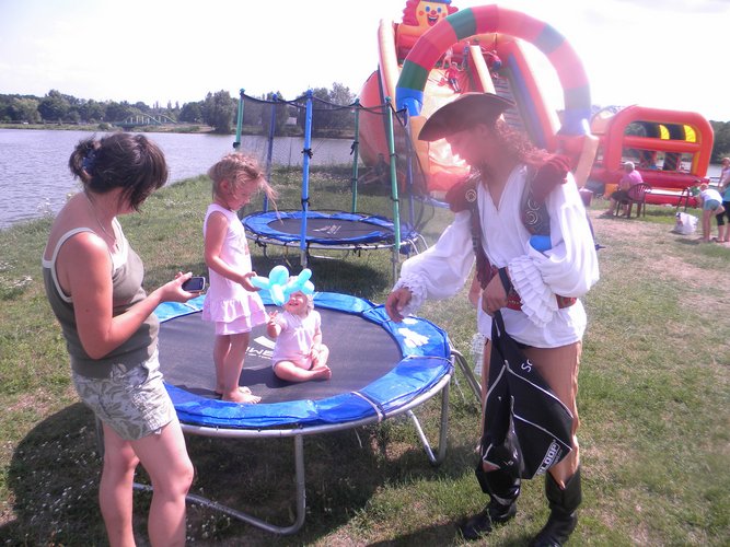 Warsztaty te, choć trwały od samego początku imprezy, zostały podobnie jak wcześniej i tym razem przedłużone, zabawa z gliną wśród dzieci okazuje się hitem imprez letnich. Garncarz i tym razem swoją pasją zainteresował wiele dzieci, dodatkową radością była możliwość zabrania wykonanego przedmiotu ze sobą Letnią imprezę nad wodą odwiedził pirat morski , który najpierw tuż przy wydzielonej scenie a póżniej wokół dmuchanego miasteczka dla dzieci prezentował ogromne bańki mydlane, skręcanie balonów w różne kształty np: pieski czy szable, ale też przeprowadził warsztaty cyrkowe z monocyklem, szczudłami czy talerzami.