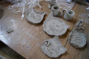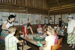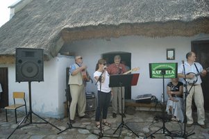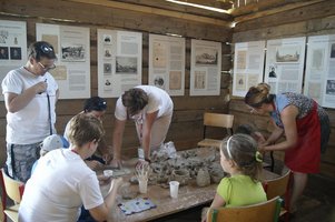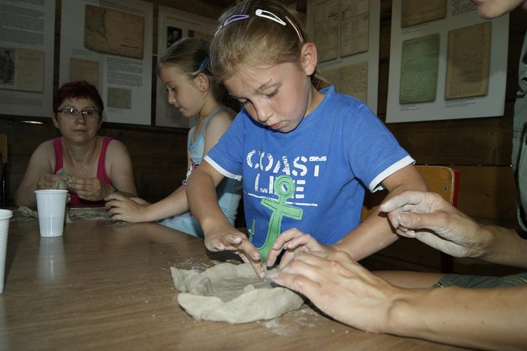 W stodole odbyły się warsztaty ceramiczne poprowadzone przez Panią Ewę Margas – Cyganek – instruktorkę z Miejskiego Domu Kultury w Radomsku. Dzięki uprzejmości Pana Przemysława Grochowskiego, który zaopatrzył placówkę w glinę. Na zajęciach dzieci oraz młodzież wykonywały przeróżne rzeczy z gliny, wykazywały się przy tym ogromną pomysłowością oraz kreatywnością. Warsztaty miały przede wszystkim charakter edukacyjny, ale także stanowiły miłą formę spędzania wolnego czasu. Pani Barbara Sitek – kustosz Muzeum oprowadzała uczestników spotkania po Zagrodzie Tatarskiej oraz opowiadała o historii jej powstania. Największą atrakcją okazał się występ Radomszczańskiej Kapeli Podwórkowej. Przy dźwiękach muzyki wszyscy wspaniale się bawili.