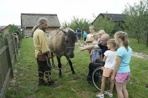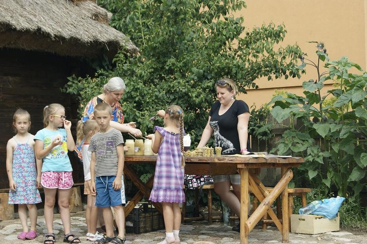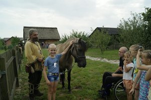 Każdy mógł także skosztować różnych rodzajów miodu. W tle dla wszystkich odwiedzających Zagrodę przygrywał na akordeonie Pan Witold Fulara. Punktem kulminacyjnym była prezentacja grupy rekonstrukcyjnej „ZADRUGA WIERCZAN”. Wspaniałą niespodzianką dla dzieci była nauka jazdy na koniku polskim, strzelanie z łuku, a także przejażdżka bryczką.