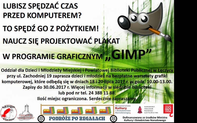 Podczas warsztatów uczestnicy nauczą się projektować plakaty w programie graficznym GIMP.