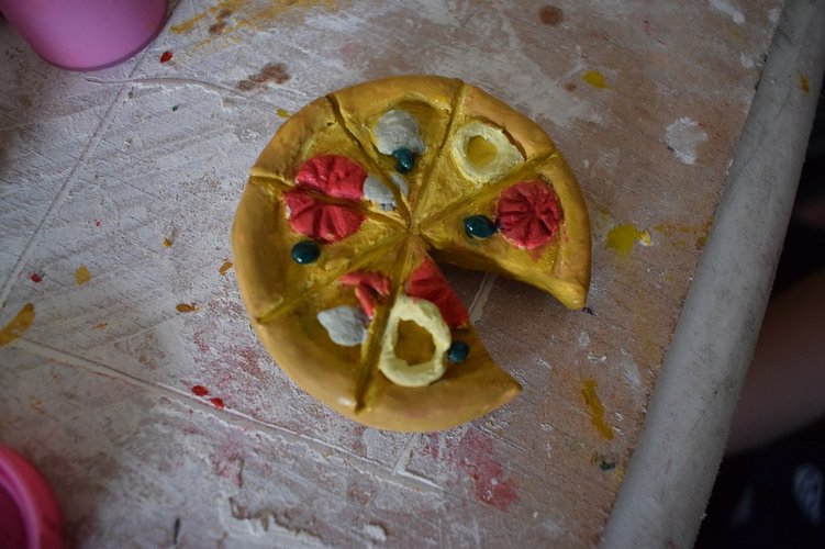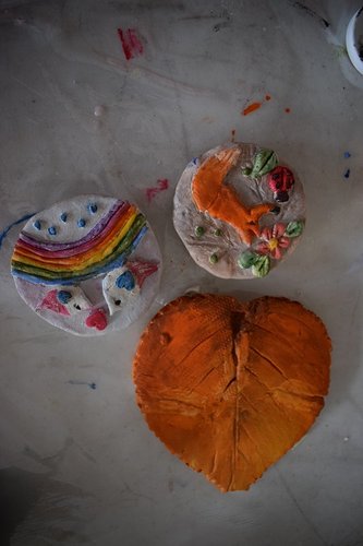 Podczas zajęć dzieci malowały farbami domki-latarenki, magnesy, słodkie babeczki i inne ozdoby. Każdy uczestnik zabrał swoje gliniane rzeźby do domu.