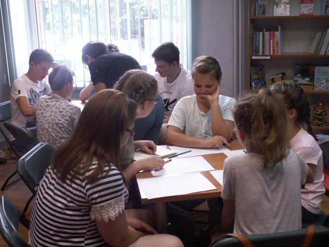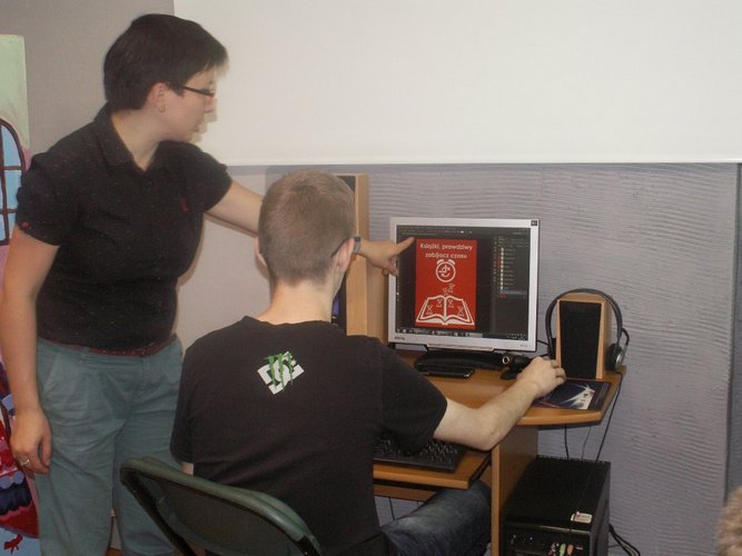 Na początku spotkania prowadząca pokazała i omówiła przykładowe plakaty o różnorodnej tematyce. Następnie uczestnicy wymyślali hasła związane z czytaniem i książkami, wybrali najlepsze i stworzyli na papierze projekty własnych plakatów. Kolejnym krokiem była praca przy komputerach w programie graficznym GIMP – nauka obsługi programu i jego podstawowych funkcji a następnie tworzenie własnych projektów plakatów i ich wydrukowanie.