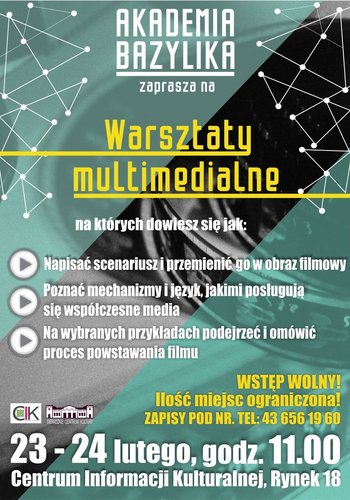 Centrum Informacji Kulturalnej w Sieradzu w dniach 23-24 lutego zaprasza na warsztaty multimedialne w ramach Akademii Bazylika.