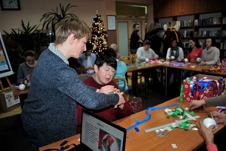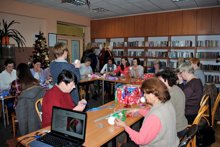 11 grudnia w Miejskiej i Powiatowej Bibliotece Publicznej w Łęczycy odbyły się warsztaty: pt. "Zdobienie bombek metodą karczochową". Udział w spotkaniu wzięło 18 osób, chociaż chętnych było dużo więcej.