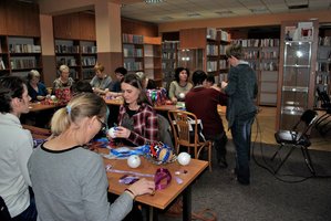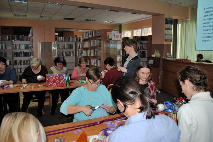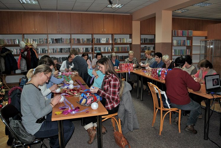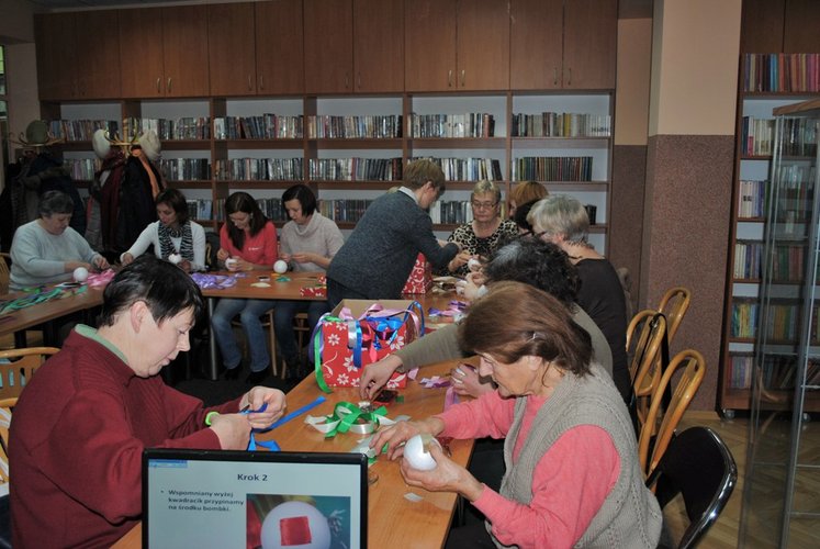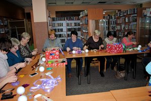 11 grudnia w Miejskiej i Powiatowej Bibliotece Publicznej w Łęczycy odbyły się warsztaty: pt. "Zdobienie bombek metodą karczochową". Do dyspozycji tych, którzy na zajęcia przybyli oprócz styropianowych bombek, kolorowych wstążek, szpilek oraz innych drobiazgów czekał również słodki poczęstunek.
