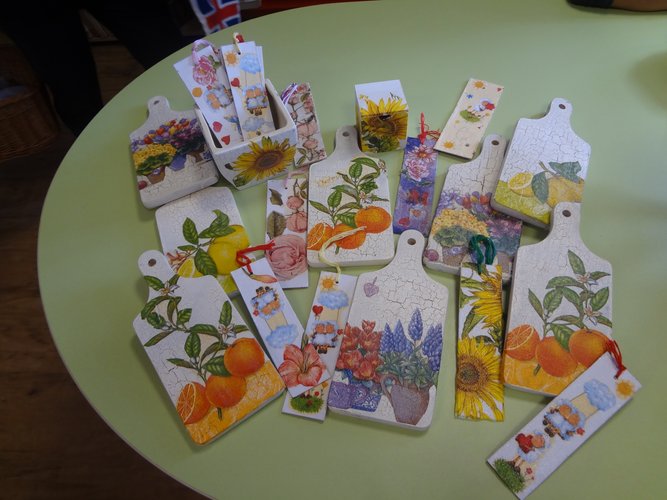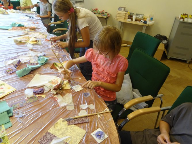 Podczas zajęć dzieci uczyły się zdobienia różnych przedmiotów codziennego użytku techniką decoupage. W tym celu wykorzystano takie przedmioty jak: deska do krojenia, donice, drewniane szkatułki, bransolety, zeszyty. W czasie zajęć dzieci wykonały piękne zakładki do książek, biżuterię oraz ozdobiły okładki zeszytów szkolnych. Wspomniana wyżej technika polega m.in. na wydzieraniu lub wycinaniu elementów papierowych (takich jak serwetki czy wydruki obrazków), naklejaniu ich na odpowiednio przygotowaną powierzchnię, a następnie utrwaleniu i ujednoliceniu motywu przy pomocy kolejnych warstw lakieru. Rzeczy, które na pozór wydają się kwintesencją szarej codzienności nabierają wówczas indywidualnego charakteru i stylu.
