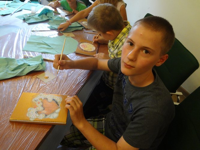 Warsztaty trwały do piątku, tj. 9 sierpnia i brało w nich udział 22 dzieci w wieku do lat 13. Zajęcia poprowadziła pani Mirosława Płacheta - malarka, pedagog oraz konsultant Wojewódzkiego Ośrodka Doskonalenia Nauczycieli w Piotrkowie Trybunalskim.