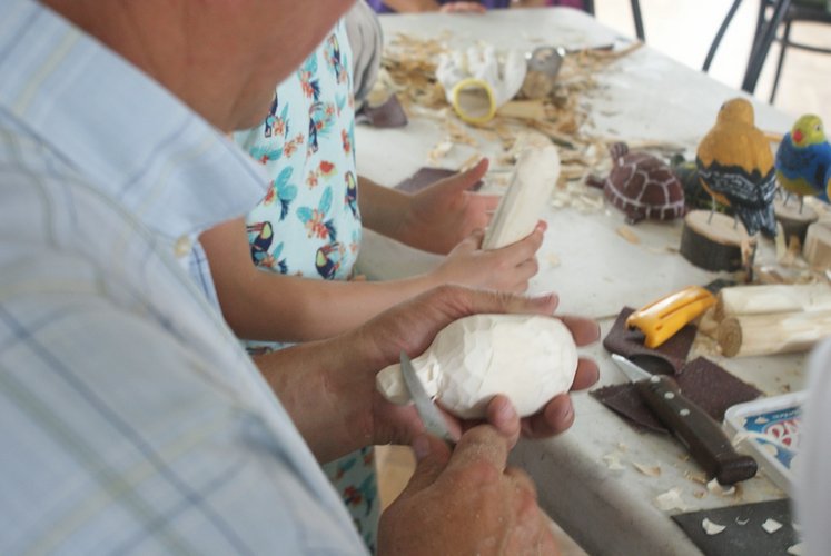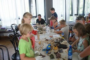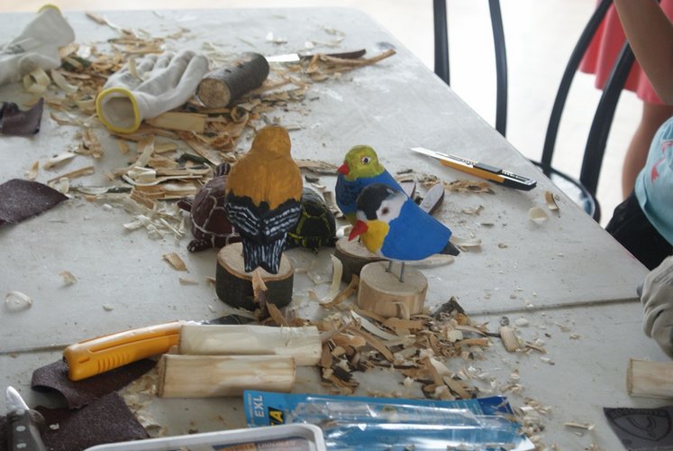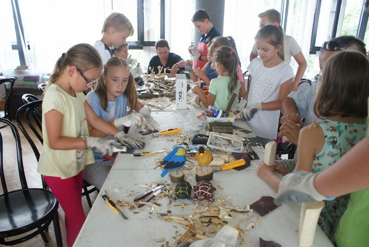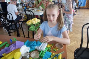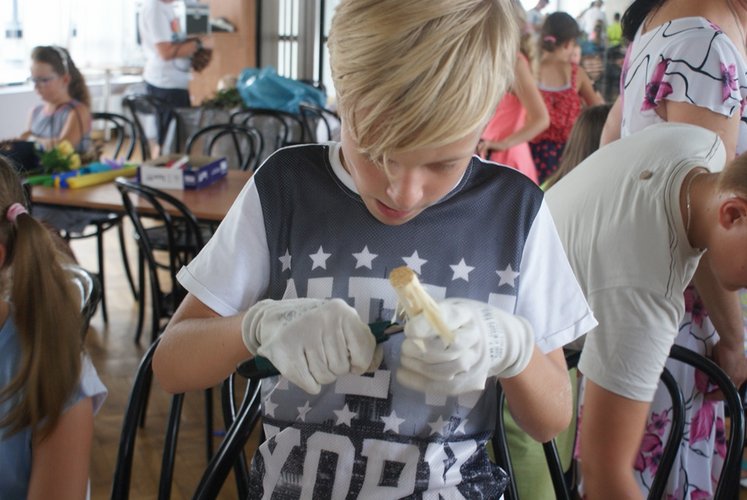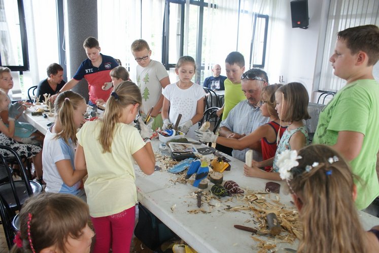 W warsztatach udział wzięły także dzieci uczestniczące w „Półkoloniach z Królową Jadwigą”, dla których był to ostatni dzień pobytu w naszej placówce. Podczas warsztatów dzieci wycinały i kleiły kwiaty z bibuły, tworzyły piękne wiklinowe koszyczki i realizowały film metodą animacji poklatkowej. Jednak największym zainteresowaniem cieszyła się rzeźba, dająca możliwość wykonania m.in. pięknych ptaków z drewna.