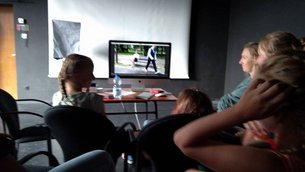 Podczas zajęć uczestnicy zapoznali się z różnymi etapami powstawania filmu dokumentalnego – od pomysłu, poprzez napisanie scenariusza i realizację zdjęć po montaż materiału.