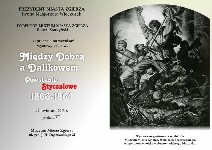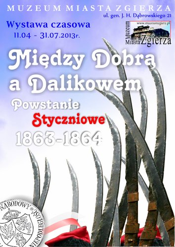 Muzeum Miasta Zgierza zaprasza na wernisaż wystawy czasowej „Między Dobrą a Dalikowem – Powstanie Styczniowe 1863-1864” 11 kwietnia 2013 r. godz. 17:00 w salach ekspozycyjnych Muzeum, Zgierz, ul. gen. J. H. Dąbrowskiego 21.