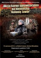 Wójt Gminy Mniszków oraz Muzeum Regionalne w Opocznie zapraszają na widowisko historyczne: „Akcja karno-aprowizacyjna na niemiecką Kolonię Jawor”. 15 czerwca 2014 r., godz. 15.00, Kolonia Jawor (Gmina Mniszków w powiecie opoczyńskim)