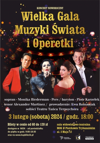 Miejski Ośrodek Kultury w Piotrkowie Trybunalskim zaprasza na koncert noworoczny – Wielka Gala Muzyki Świata i Operetki.