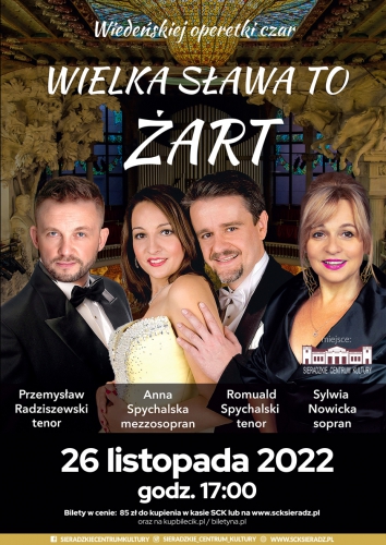 Bilety w cenie: 85 zł (do kupienia kasie SCK oraz na www.scksieradz.pl / kupbilecik.pl / biletyna.pl)