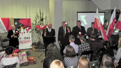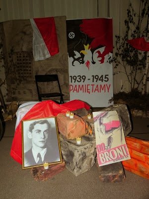 Spotkanie w Bibliotece uświetnił występ podopiecznych Domu Pomocy Społecznej w Skrzynnie. Artyści w bardzo profesjonalny sposób zaprezentowali spektakl poświęcony 75. rocznicy wybuchu II wojny światowej, 70. rocznicy wybuchu Powstania Warszawskiego oraz obchodom Roku Jana Karskiego.